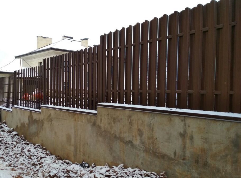- Быструю установку. Секции 2,5–3 м крепятся к столбам без тяжёлого фундамента.