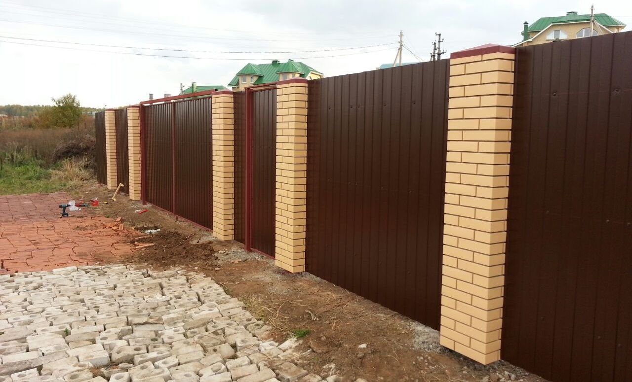 Сначала размечают периметр, потом столбы бетонируют (для 2 м это обязательно), и уже к готовым стойкам крепят панели на скобы/хомуты в цвет. Уход сводится к мойке и осмотру: если где-то повредили покрытие, место просто подкрашивается антикоррозийным составом.