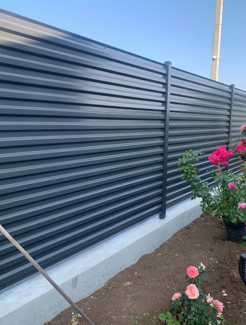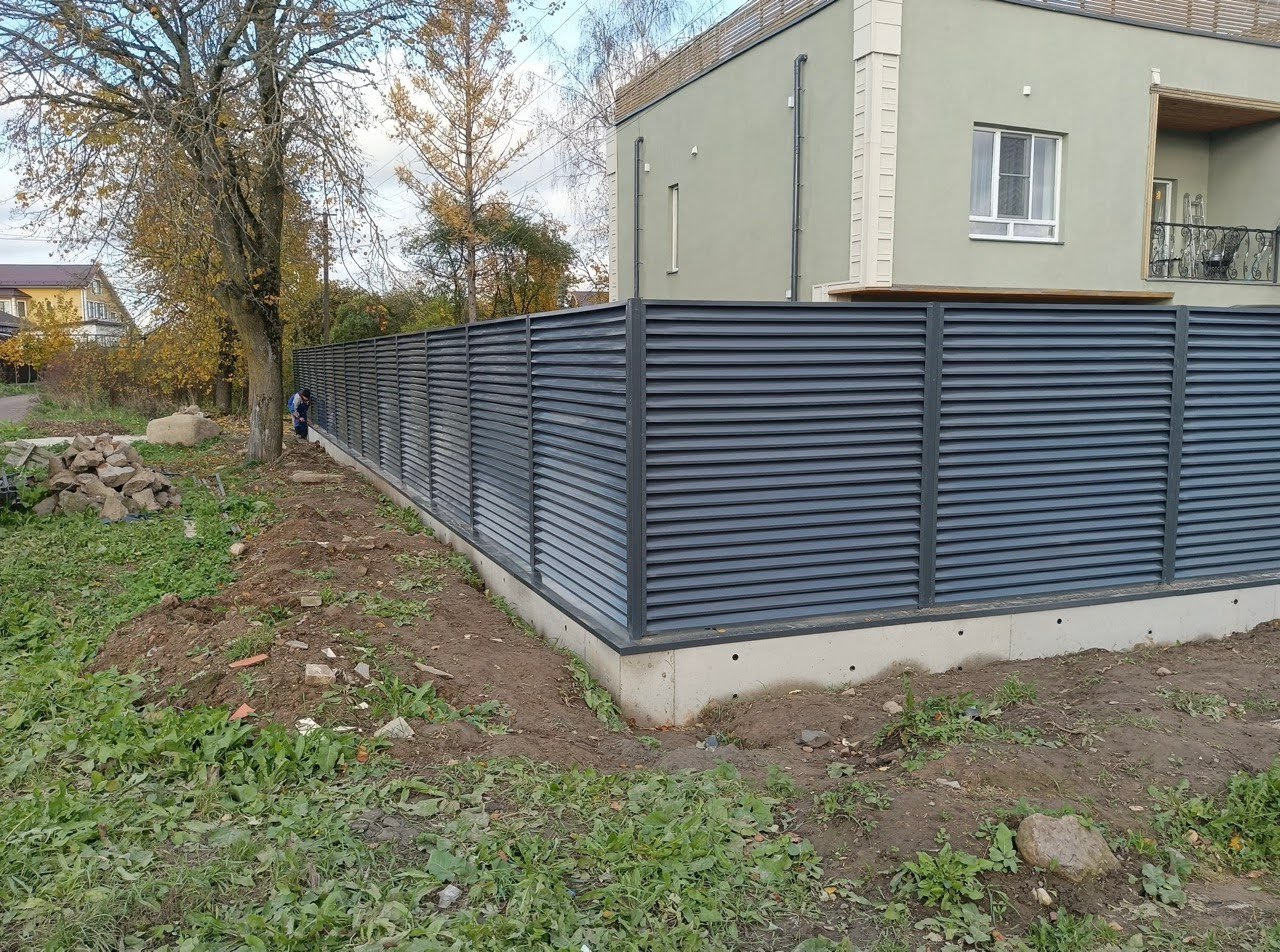 Забор жалюзи серый графит 1.8 метра на ленточном фундаменте